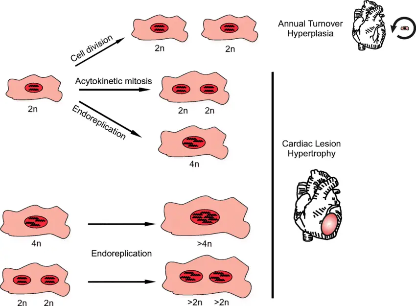 In adult mammals, mature cardiomyocytes show strong stress and fetal-gene reactivation programs after MI (e.g., natriuretic peptides, metabolic reprogramming). Regenerative proliferation is limited in adult hearts, but transcriptomics has identified subpopulations with modest cell-cycle gene induction and stress-adaptive transcriptional states. Cross-species work (e.g., zebrafish vs mouse) highlights genes and pathways associated with regenerative competence that are absent or muted in adult mammalian cardiomyocytes.